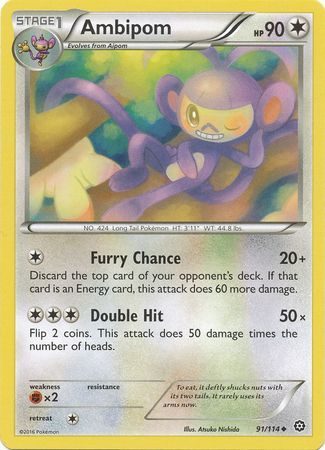 Ambipom er et Uncommon kort fra XY Steam Siege serien og har nummer 91/114.