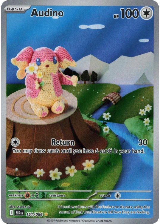 Audino er et Illustration Rare | Secret Rare pokemon kort fra SV10.5 Black Bolt serien og har nummer 151/086.
