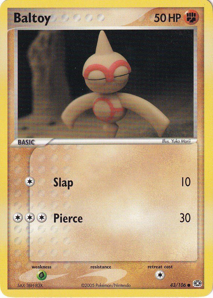 Baltoy er et Common pokemon kort fra EX Emerald serien og har nummer 43/106.