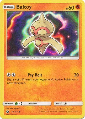 Baltoy er et Common kort fra S&M Celestial Storm serien og har nummer 78/168.