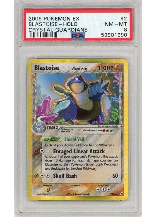 Dette Pokémonkort er PSA 8 (NM-MT 8), hvilket betyder at kortet er Near Mint-Mint, altså i meget god stand, men kan have et par mindre fejl.