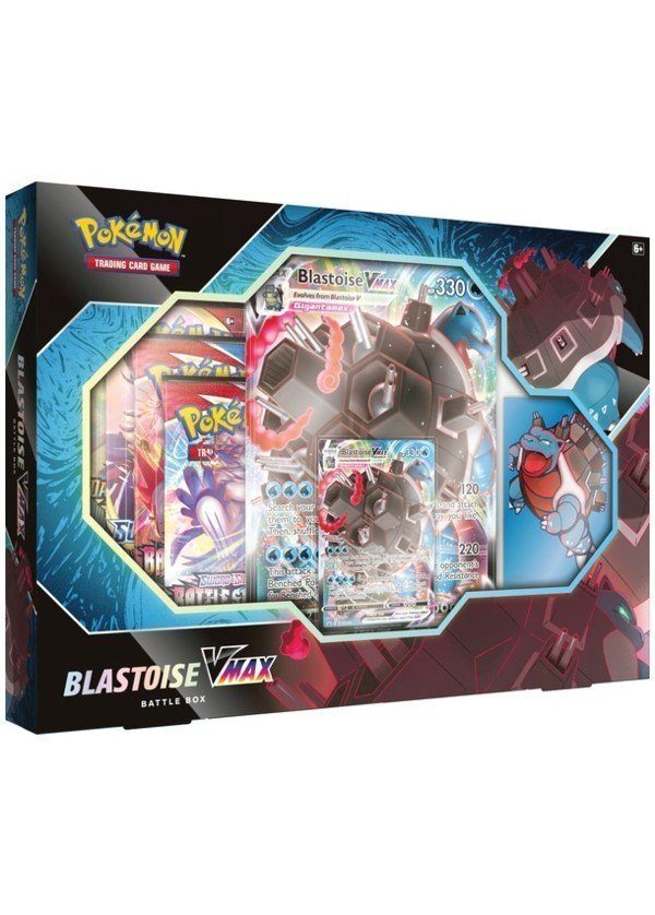 Denne seje pokemon V box fra SWSH Battle Styles indeholder både 4 booster pakker og Blastoise VMAX – SWSH103.