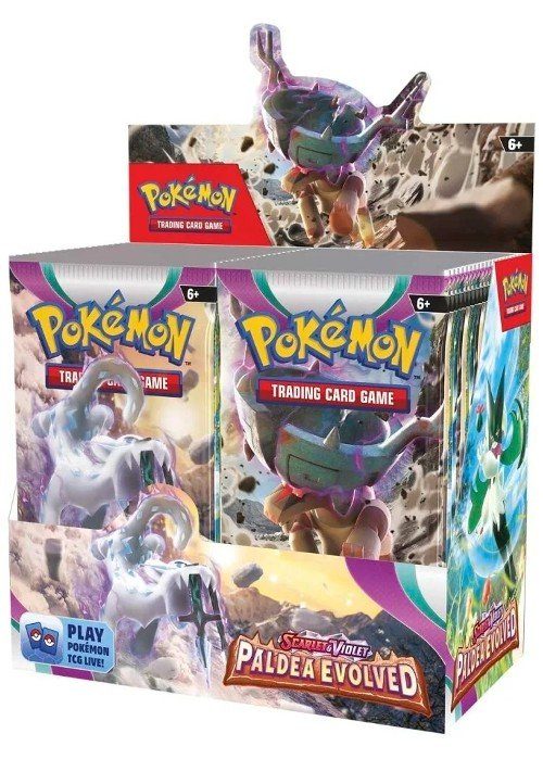 En booster box case fra SV2 Paldea Evolved indeholder 6 sealed booster bokse, som hver især har 36 helt nye pokemon booster pakker fra SV2 Paldea Evolved. Det vil sige, at du kan glæde dig til at få 360 nye pokemonkort pr. box og måske, hvis du er heldig, et af de eftertragtede special illustration rare kort!!!