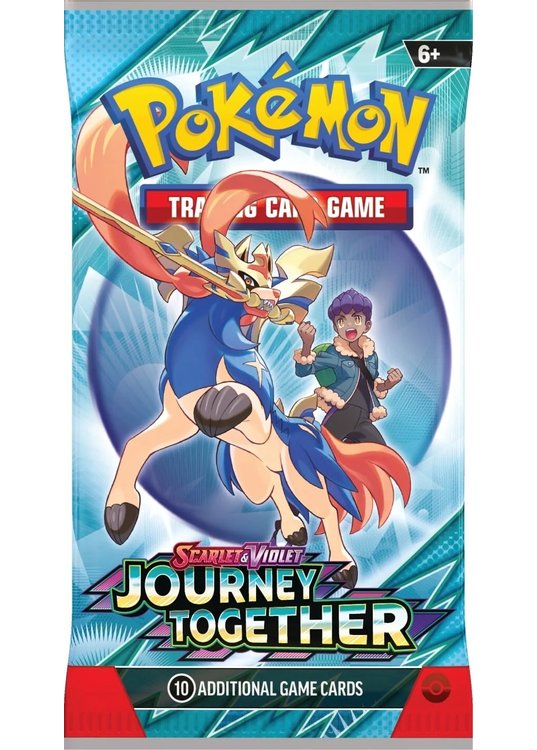 En booster pakke fra SV09 Journey Together indeholder 10 forskellige pokemonkort fra SV09 Journey Together og 1 kode du kan bruge til Pokemon TCG online.