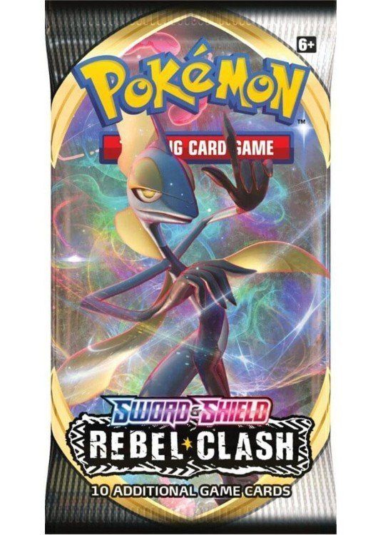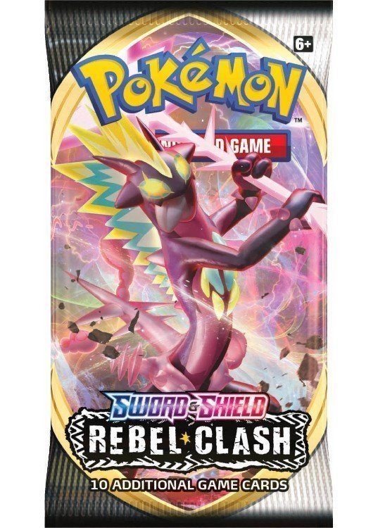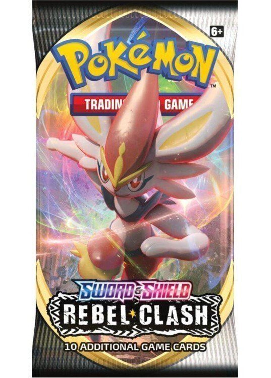 En booster pakke fra SWSH Rebel Clash indeholder 10 forskellige pokemonkort fra SWSH Rebel Clash og 1 kode du kan bruge til Pokemon TCG online.