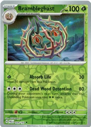 Brambleghast er et Uncommon pokemon kort fra SV02 Paldea Evolved serien og har nummer 24/193.