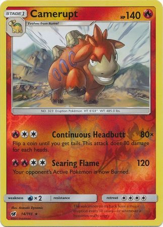 Camerupt er et Rare kort fra S&M Crimson Invasion serien og har nummer 14/111.
