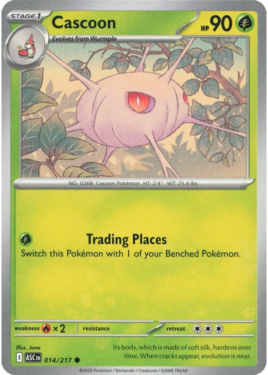 Cascoon er et Common pokemon kort fra ME02.5 Ascended Heroes serien og har nummer 14/217.