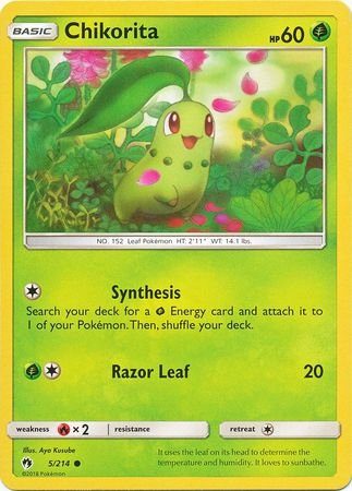 Chikorita er et Common kort fra S&M Lost Thunder serien og har nummer 5/214.