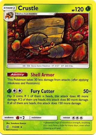 Crustle er et Rare kort fra S&M Unified Minds serien og har nummer 11/236.