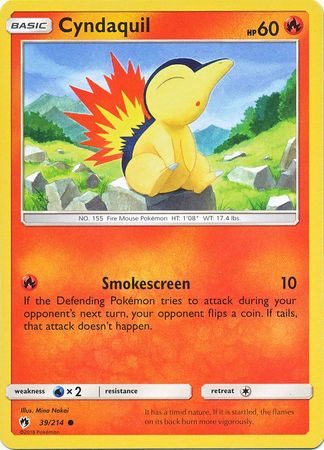 Cyndaquil er et Common kort fra S&M Lost Thunder serien og har nummer 39/214.
