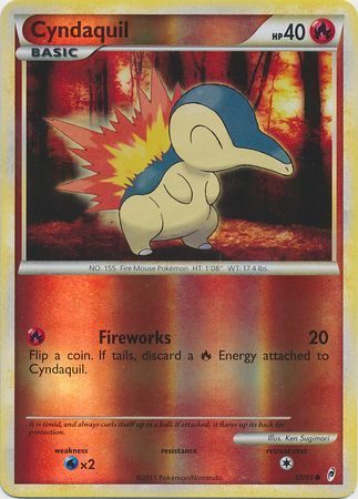 Cyndaquil er et Common kort fra Call of Legends serien og har nummer 55/95.