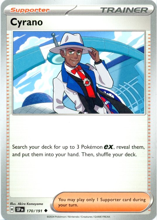 Cyrano er et Uncommon pokemon kort fra SV08 Surging Sparks serien og har nummer 170/191.
