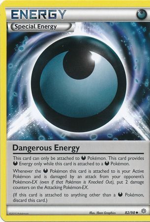 Dangerous Energy er et Uncommon kort fra XY Ancient Origins serien og har nummer 82/98.