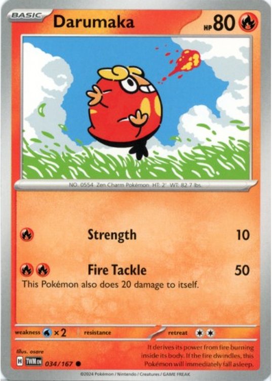 Darumaka er et Common pokemon kort fra SV06 Twilight Masquerade serien og har nummer 34/167.