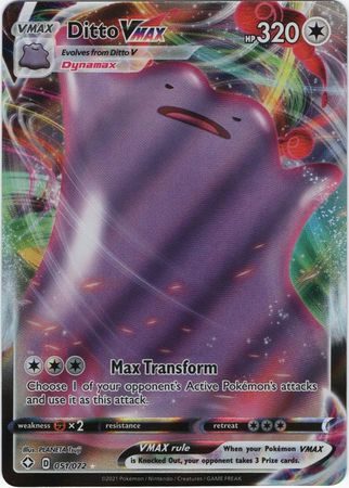 Ditto VMAX er et Ultra Rare VMAX pokemon kort fra SWSH Shining Fates serien og har nummer 51/72.