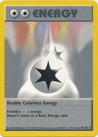 Double Colorless Energy er et Uncommon pokemon kort fra Base Set serien og har nummer 96/102.