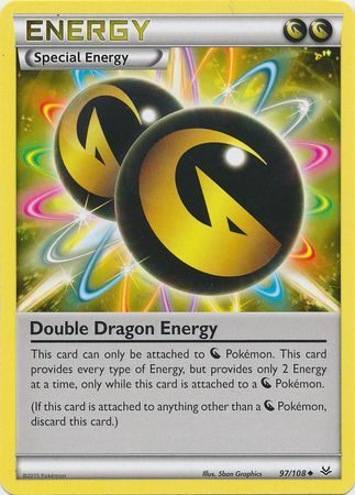 Double Dragon Energy er et Uncommon kort fra XY Roaring Skies serien og har nummer 97/108.