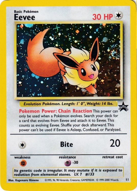 This power can only be used when a Pokémon evolves. Search your deck for a card that evolves from Eevee and attach it to Eevee. This counts as evolving Eevee. Shuffle your deck afterward. This power can’t be used if Eevee is Asleep, Confused, or Paralyzed.
