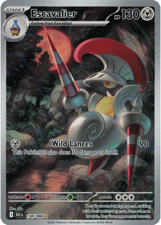 Escavalier er et Illustration Rare | Secret Rare pokemon kort fra SV10.5 Black Bolt serien og har nummer 138/086.
