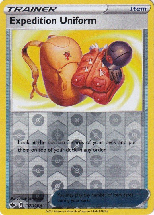 Expedition Uniform er et Uncommon pokemon kort fra SWSH Chilling Reign serien og har nummer 137/198.