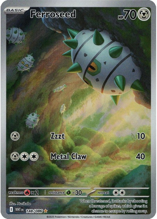 Ferroseed er et Illustration Rare | Secret Rare pokemon kort fra SV10.5 White Flare serien og har nummer 148/086.