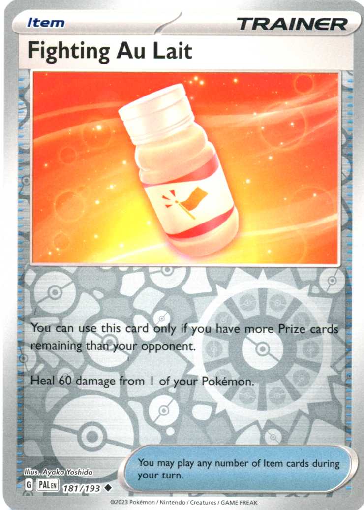 Fighting Au Lait er et Uncommon pokemon kort fra SV02 Paldea Evolved serien og har nummer 181/193.