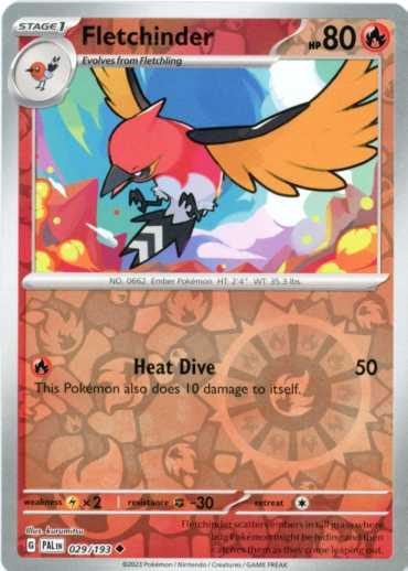 Fletchinder er et Uncommon pokemon kort fra SV02 Paldea Evolved serien og har nummer 29/193.