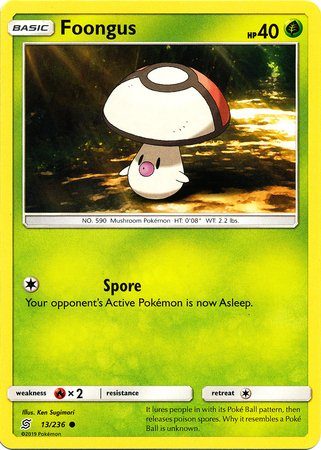 Foongus er et Common kort fra S&M Unified Minds serien og har nummer 13/236.
