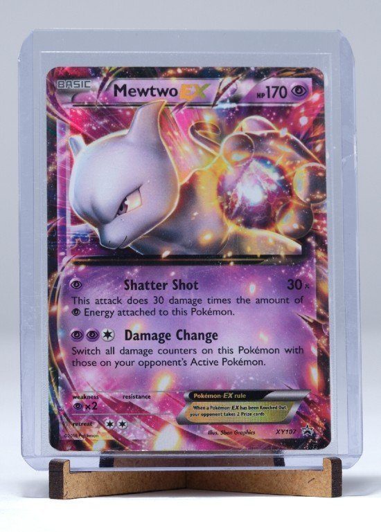 Denne kortstander fra Legendary Card Collector måler 85x65x35 mm og er fremstillet i 4 mm HDF, for at sikre bedst mulig stabilitet og udseende. Desuden er designet så gennemført, at standeren kan bruges til udstilling af både PSA kort, kort i Toploader, kort i sleeves eller bare helt almindelige Pokémonkort.