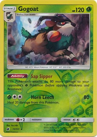 Gogoat er et Rare Holo kort fra S&M Crimson Invasion serien og har nummer 11/111.