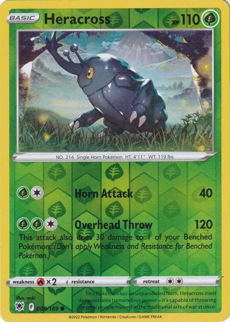 Heracross er et Common pokemon kort fra SWSH Astral Radiance serien og har nummer 8/189.
