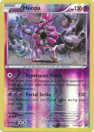 Hoopa er et Rare kort fra XY Steam Siege serien og har nummer 51/114.