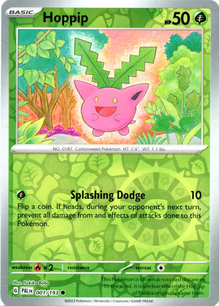 Hoppip er et Common pokemon kort fra SV02 Paldea Evolved serien og har nummer 1/193.