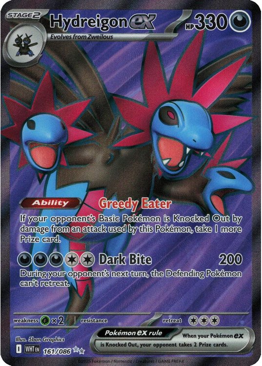 Hydreigon ex er et Ultra Rare | Secret Rare ex (SV) pokemon kort fra SV10.5 White Flare serien og har nummer 161/086.