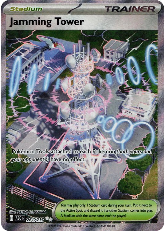 Jamming Tower er et Ultra Rare | Secret Rare pokemon kort fra ME02.5 Ascended Heroes serien og har nummer 261/217.