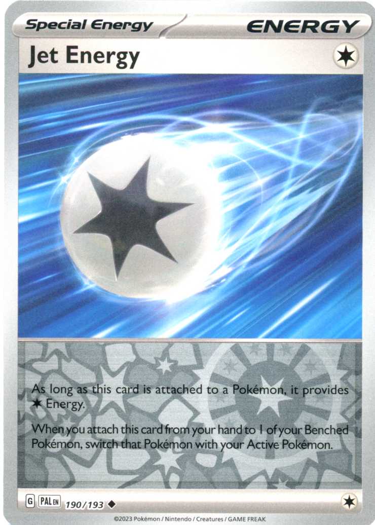 Jet Energy er et Uncommon pokemon kort fra SV02 Paldea Evolved serien og har nummer 190/193.