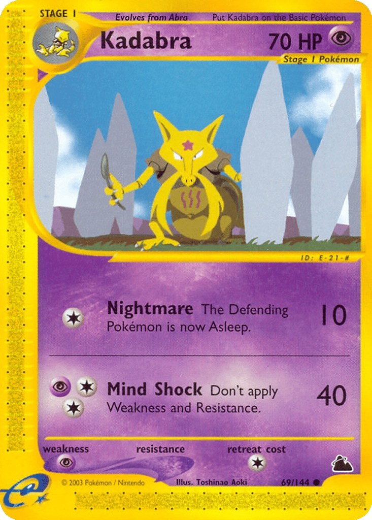 Kadabra er et Common pokemon kort fra Skyridge serien og har nummer 69/144.