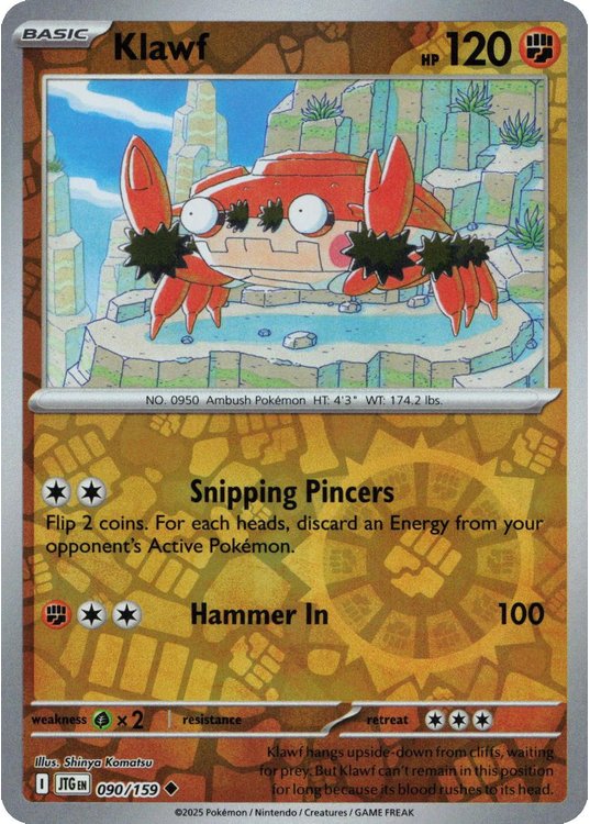 Klawf er et Uncommon pokemon kort fra SV09 Journey Together serien og har nummer 90/159.