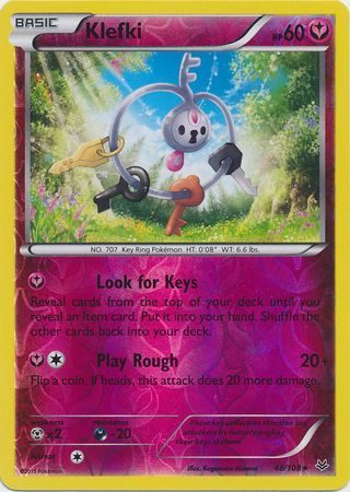 Klefki er et Rare kort fra XY Roaring Skies serien og har nummer 48/108.