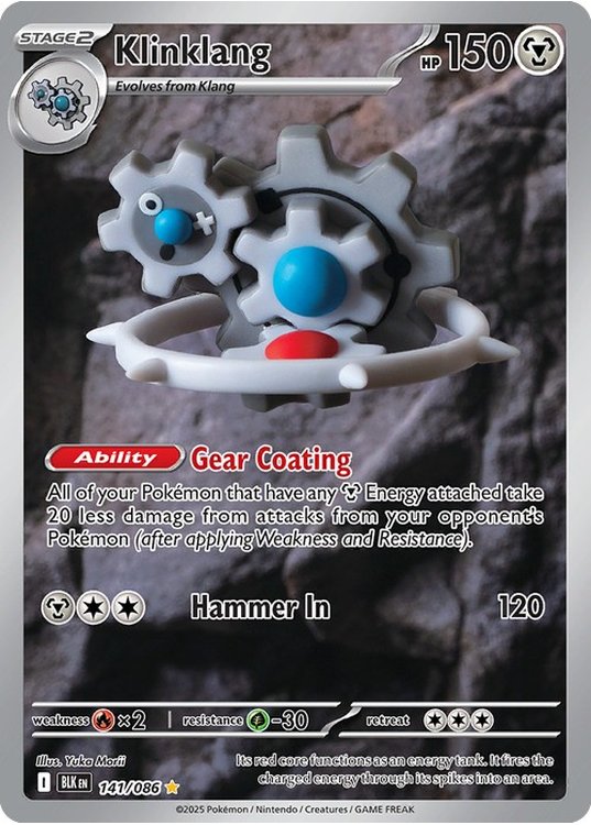 Klinklang er et Illustration Rare | Secret Rare pokemon kort fra SV10.5 Black Bolt serien og har nummer 141/086.