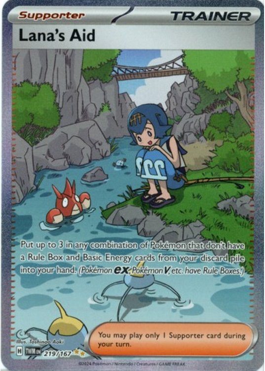 Lana’s Aid er et Special Illustration Rare | Secret Rare pokemon kort fra SV06 Twilight Masquerade serien og har nummer 219/167.