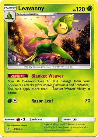 Leavanny er et Rare kort fra S&M Unified Minds serien og har nummer 9/236.