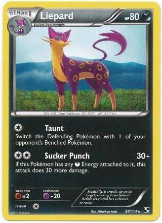 Liepard er et Rare kort fra Black & White serien og har nummer 67/114.