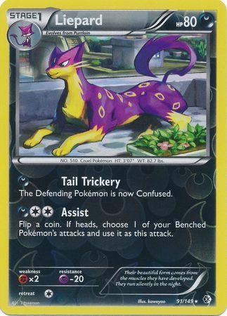 Liepard er et Rare Holo kort fra B&W Boundaries Crossed serien og har nummer 91/149.