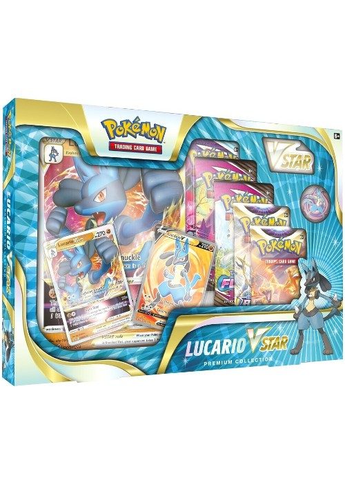 Channeling all its determination and might, Lucario VSTAR unleashes an Aura Star for the ages! In this collection, you get playable foil cards featuring Lucario V and Lucario VSTAR, plus an oversize version of Lucario VSTAR for display. You’ll also find a Lucario pin featuring a unique design, and Pokémon TCG booster packs with even more cool and powerful Pokémon.