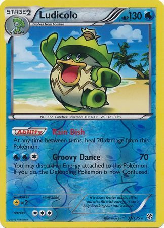 Ludicolo er et Rare kort fra B&W Plasma Storm serien og har nummer 31/135.