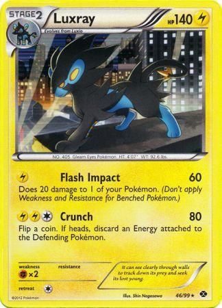 Luxray er et Rare Holo kort fra B&W Next Destinies serien og har nummer 46/99.