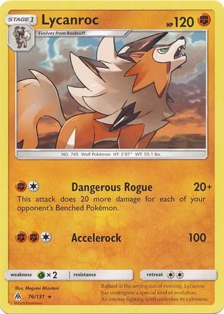 Lycanroc er et Rare kort fra S&M Forbidden Light serien og har nummer 76/131.