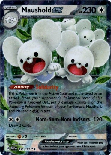 Maushold ex er et Double Rare | Super Rare ex (SV) pokemon kort fra SV04 Paradox Rift serien og har nummer 155/182.